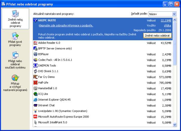panely/pridať alebo odobrať programy- zmeniť alebo odobrať)