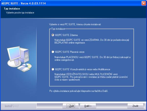 602PC SUITE nám ponúka 2 možnosti inštalácie: typickú a voliteľnú.