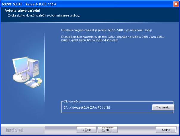 602PC SUITE si vyžiada zadanie cesty, kam sa program nainštaluje. Odporúčame program nainštalovať do